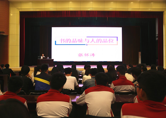 张怀涛教授学识渊博,谈吐风雅,对阅读有独到见解。讲座中,他对我校优秀的读书传统表示赞赏,并从“读书就是交友、读书就是理解、读书就是幸福、读书就是超越”等四个方面,对“书的品味与人的品位”进行了全面的分析和解读。报告内容深入浅出,举例鲜活生动,赢得了现场师生的阵阵掌声。活动中,他还积极与学生互动,送出了自己的多部诗集作品,并根据我校的校徽寓意及校歌校训创作了诗歌《敬致黄河水院书友》:“源开流畅万物生,断金攻玉志相承。守诚诚信天地阔,求新新霁景胜明。创业业拓航江海,修能能强荟豪英。砥柱挺立奠川岳,书中岁月读海平。”