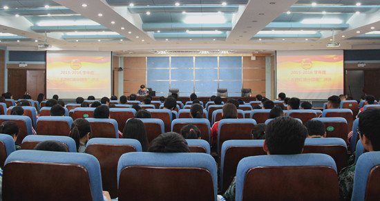为进一步加强学校共青团组织建设,增进基层团组织之间的交流学习,树立优秀典型,激发基层团组织的凝聚力和创造力,4月28日下午,我校在3号实训馆学术报告厅举行2015-2016学年度“五四红旗分团委”评选活动。各院系200余名师生代表参加此次活动。活动由校团委郝黎闻老师主持。