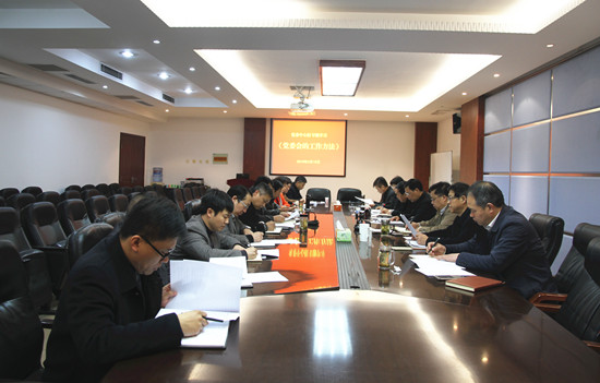 3月15日上午,我校党委中心组召开扩大会议,贯彻中组部《关于学习贯彻习近平总书记重要批示精神加强党委(党组)领导班子建设的通知》要求,专题学习了毛泽东同志的《党委会的工作方法》。校党委中心组成员,党政办、组织部、宣传部、学工部、武装部、纪委、工会、团委等部门负责人参加了专题学习活动。校党委书记许琰主持会议并作主题发言和总结讲话。