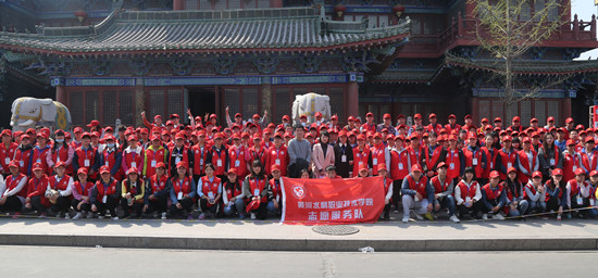 师生志愿者在比赛结束后合影