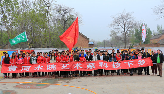 参加科技文化下乡志愿活动的艺术系师生志愿者合影
