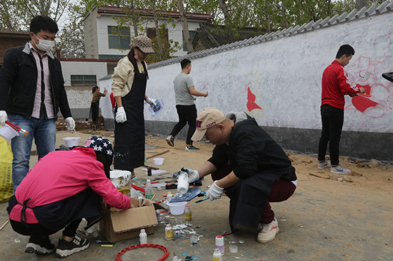 4月5日,我校艺术系100余名师生奔赴开封市祥符区刘店乡开展绘制农村墙体宣传画活动,支援刘店乡社会主义新农村建设。活动开始前,该系师生牺牲清明节假期休息时间,分别完成了实地勘测、物件购买、行动策划等一系列相关工作,为活动顺利开展做好了充足准备。