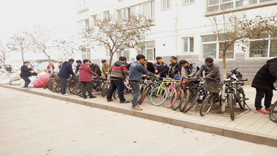 3月5日,我校机械工程学院分团委组织学生们开展学雷锋志愿服务活动,志愿者们首先对停放在学生宿舍门口自行车的摆放进行了有序整理,并在校园内开展捡拾垃圾碎屑等活动。(机械工程学院 侯静)