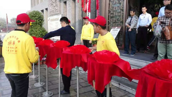 志愿者在服务菊花文化节主会场——龙亭公园开园仪式后合影留念