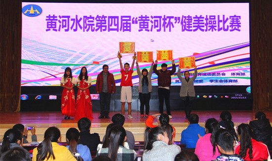 11月13日下午,我校第四届“黄河杯”健美操大赛在学生活动中心如期举行,体育部和校团委相关教师担任裁判。比赛共有来自全校所有院系的12支队伍参加,经过激烈角逐,艺术系、信息工程系、水利工程学院、财经系分获前四名。