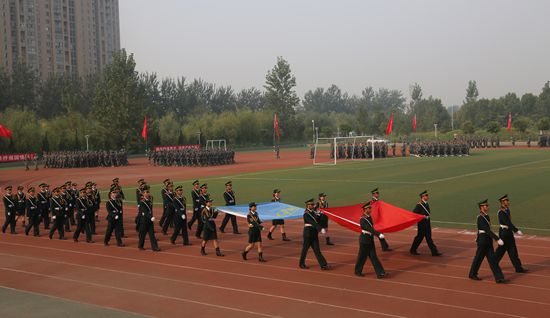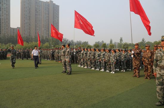 飒爽英姿展风采,嘹亮口号显校威。9月18日上午,我校2015级新生军训阅兵式在祥云体育场隆重举行,驻汴某部队首长和我校全体校领导出席阅兵式,全校各院系、相关部门负责人参加检阅。阅兵式由党政办主任刘玉宾主持。