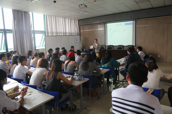 521下午,周口师范学院汉语国际教育专业的100余名师生到我校进行对外汉语教学观摩活动。此次观摩课由留学生班教师杨芊主讲,国际教育交流合作小组副组长陶永霞主持,授课对象为我校2014级全体留学生。