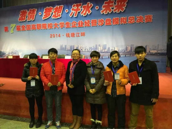 126,第七届全国高职院校企业经营沙盘模拟总决赛在浙江商业职业技术学院拉开帷幕。由我院财经系张晓丹、舒莎两位老师带队,该系投资与理财专业的徐崇甲、张海洋、经科、楚梦影等4名学生组成的代表队参加了比赛,并荣获了一等奖的优异成绩。