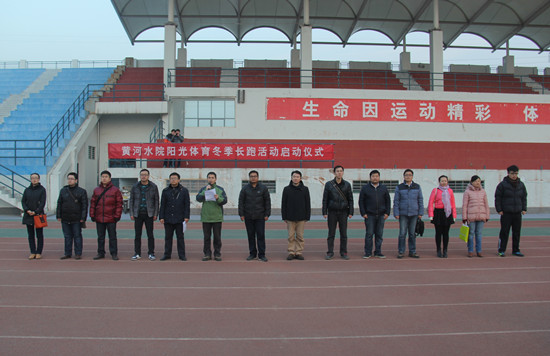 123日下午,我院师生在祥云体育场隆重举行了“阳光体育绿色公益跑”大学生阳光体育冬季长跑活动启动仪式。院学生处处长朱焕立、体育部主任刘盎、团委副书记李聪、学生处教育管理科科长柴杉以及各系分团委书记、2014级辅导员、各系学生代表等800余人参加了仪式。仪式由学生处副处长王国英主持。