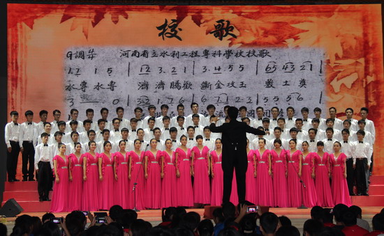 颂经典一展中国梦,唱校歌礼赞水院情。在第65个国庆节来临之际,926日下午,由院团委主办、艺术系承办的“中国梦 水院情”新生合唱展演在学生活动中心一楼报告厅隆重举行。院领导刘国际、茹正波、王卫东、刘紫婷、杨士恒、张豫东,刘卫锋等出席活动,学院各部门负责人、各系领导、老师及2000余名学生参加活动。