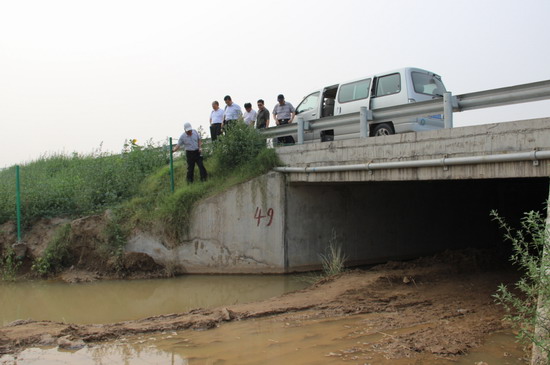 我院黄河大堤防汛责任堤段起止桩号为70+250----70+450(全长200米),是开封市黄河大堤防汛段的最西端,位于连霍高速里程路标512公里300米处。我院立足于防大汛、抢大险、抗大灾、早部署、争主动的原则,由主管领导带队亲赴现场,认真全面查看责任段情况,研讨防汛方案。连霍高速蔡家坟村南路涵洞,由于连霍高速加宽工程基本完成,涵洞内积水很深,防汛工作必须提前做好准备。茹院长强调,在认真察看、分析实地情况,做好防汛工作实施方案的前提下,一定要将任务分解到每个部门,明确责任人,要明确抢险线路、物资存放地点,确保必要的资金、物资及技术力量的到位。