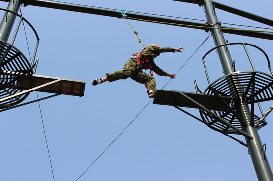 此次素质拓展活动由外语系和土木工程系中外合作专业共74位同学参加。开营仪式后,参加活动的学生组成三个团队,并依次展示了各具特色的队旗、队名、口号及队歌。在之后的5天训练时间里,学生们相继进行了信任背摔、高空断桥、生死电网、风雨人生路、雷阵取水、驿站传输、万里长城、毕业墙等训练活动。在拓展训练中,所有成员都斗志昂扬,有组织、有纪律,充分发挥集体智慧,发扬团队精神,创造了一个又一个佳绩。外语系党总支书记关六三在闭营仪式时高度赞扬了学生们的表现,希望大家在今后的学习中也能发扬不怕苦不怕累的精神,团结奋进,有所收获。