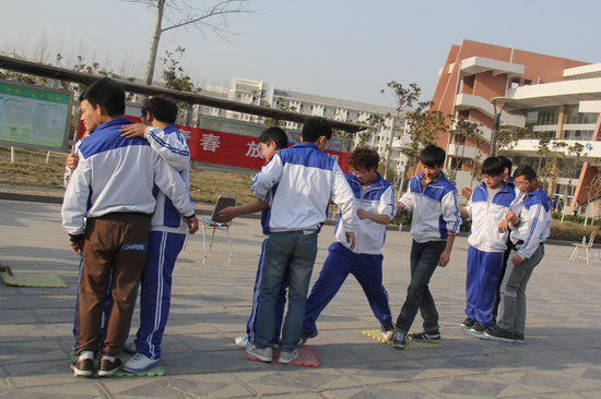 “三月春归留不住,春归春意难分付”。3月15日下午,我院青年大道一片欢声笑语,环境与化学工程系80名学生兴致盎然、情绪高涨地参加学院组织的素质拓展训练活动,有的用身体摆出不同的字母,有的几个人共同踩到垫子上,有的置身“雷阵”之中,依靠队友的指挥走出重围。本次活动由学生处主办,院阳光心理社承办,环境与化学工程系阳光心理分社协办。学生处副处长王国英、环境与化学工程系党总支副书记王振强出席活动,心理咨询中心主任郭豪杰、环境与化学工程系心理指导老师武琳琳、心理咨询中心王超老师指导活动。