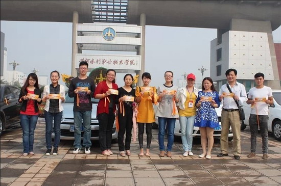 10月12日上午,由财经系和开封市志愿者协会牵手开展的“橙丝带”公益活动在我院举行。开封市志愿者协会负责人将参与活动的承诺书和标志物----“橙丝带”送到财经系办公室,系主任张辉率先签下第一份承诺书。参与活动的部分老师在学院大门外亲手为爱车系上橙丝带,橙丝带飘起来,成为黄河水院一道靓丽的风景线。