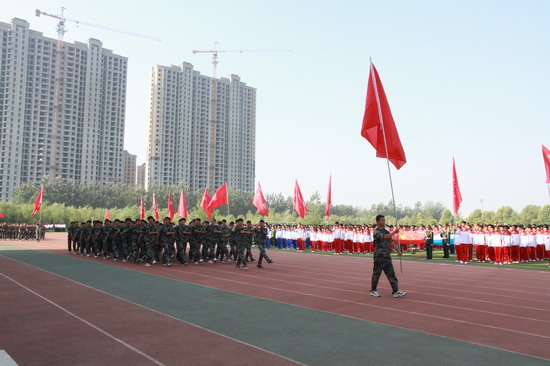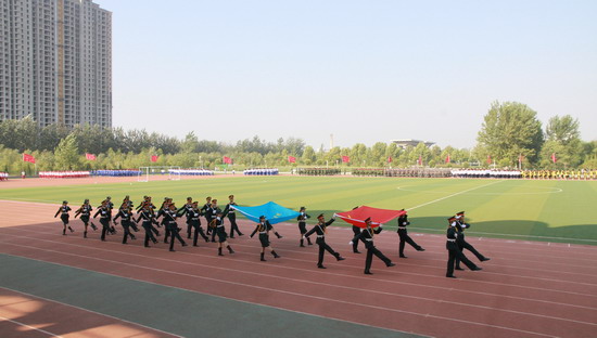 飒飒军姿展风采,猎猎军旗振校威。9月18日上午,我院2013级新生军训阅兵式在祥云体育场隆重举行,驻洛某部队首长及我院领导张惠贞、刘国际、茹正波、刘紫婷、张豫东、刘卫锋等出席阅兵式,全院各系部、相关部门负责人参加检阅。阅兵式由党政办副主任李响主持。