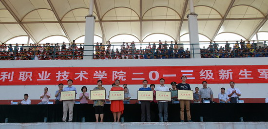 军训分列式结束后,学生处处长朱焕立宣布了军训总评获奖的6个方队(系部)、十佳教官、223名优秀军训学员、60名优秀辅导员助理等名单。院领导和部队首长向获奖单位和个人颁发了奖牌和证书。