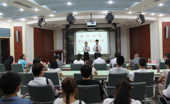 6月15日下午,由旅游系、教务处、学生处和院团委联合举办的黄河水院第五届导游技能大赛在四号实训楼演播大厅举行,本次大赛特邀院学生处处长朱焕立、院团委书记谷献晖、教务处副处长赵兴安、开封市旅行社协会秘书长夏珊珊、开封市华夏旅行社总经理万志刚、开封市豫之旅旅行社经理宋凯涛等11位校内外专家担任评委。经过激烈角逐,晋级决赛的十五名选手的名次最终排定,安雅娟、侯彪、王宇等同学获得“十佳导游”荣誉称号,李若楠、李婷婷等五名选手获得“优秀导游”荣誉称号。