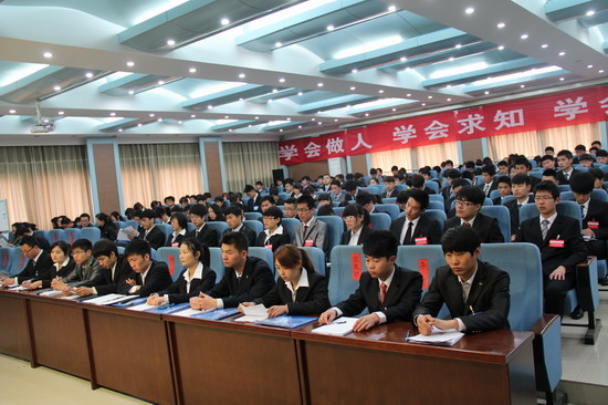 院党委副书记刘卫锋向大会致辞,他希望新一届学生会要着力加强思想引导,充分运用新媒体等多种手段,以“学习十八大精神 青春传递正能量”为主题,大力开展“三观三热爱 我的中国梦”等主题教育活动,以增强学生干部的使命感、责任感。要紧紧围绕学院中心工作,以改革创新精神切实加强自身建设,进一步健全组织体系,完善工作机制,创新工作方法,提高学生干部的综合素质,提升学生会工作科学化水平。要进一步关心关爱青年学生,做好青年学生的代言人,学院各部门要积极改善学生组织的工作条件,优化工作环境,增强为学生服务的意识。