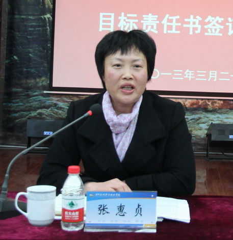3月20日下午,我院在4号实训馆演播大厅召开新学期中层干部会议,安排部署2013年度学院党政工作任务,签订党风廉政建设与反腐败工作目标责任书。院领导张惠贞、刘国际、茹正波、刘紫婷、杨士恒、张豫东、刘卫锋出席会议,全体中层干部参加会议。会议由院党委书记张惠贞主持。