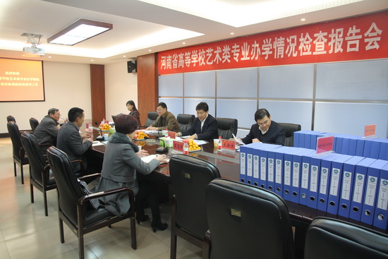 11 28 ,以河南财经政法大学副校长司林胜为组长的省教育厅专家组一行4人莅临我院,对我院艺术类专业办学情况进行检查。我院召开艺术类专业办学情况汇报会进行了汇报,副院长王俊出席会议。教务处处长焦爱萍、艺术系党总支书记吕来、党政办副主任李响及艺术系教师代表参加了汇报会。