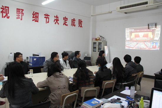 党政办、组织部、宣传部、纪委组织收看党的十八大盛况
