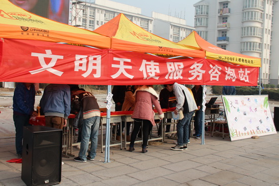 1118,我院学生会全体成员在扬帆大道通过海报、广播、签名以及发放《校园文明倡议书》等形式对志愿服务活进行了有力宣传。1119,院学生会选出思想道德素养好、学习成绩优异、日常行为文明的60名学生干部,针对我院食堂、教室、校园以及宿舍出现的不文明现象对广大同学进行文明引导。随后各系学生分会也将选出60名“文明天使”参加该志愿服务活动。
