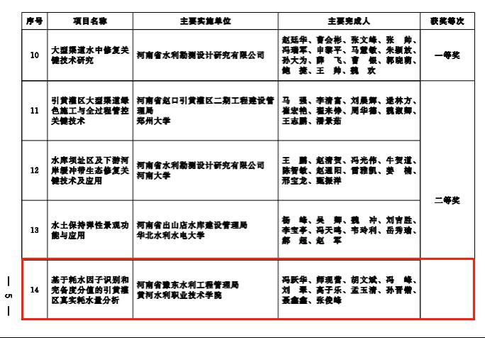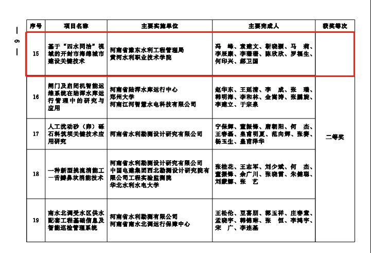 河南省水利科学技术奖评选是由河南省水利厅组织开展的水利科学技术创新成果申报工作,是贯彻落实我国新时期“十六字”治水方针和我省“四水同治”治水新理念,促进水利科技进步的重要举措,在鼓励水利科技工作者勇于创新方面起到积极的推动作用。此次我校两项成果喜获二等奖,展示了我校科研团队在科技创新、技术研发、推广应用等方面取得的成果,也将为我校“双高计划”建设、职业本科申报奠定良好的基础。