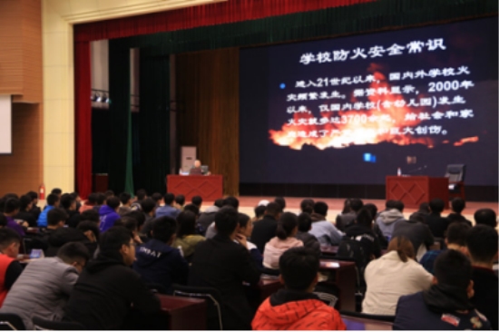 11月21日下午,我校邀请开封市公安消防支队警官来校作消防安全知识讲座。各学院师生代表及后勤、物业、安保等人员700余人参加了本次活动。讲座中,消防警官针对不同场景、不同燃烧物特点,介绍了不同类型火灾发生的原因及火灾预防等消防基本知识,以大量详实的案例重点讲授了火场逃生、自救、互救等方面的急救措施等。讲解深入浅出,案例针对性强,教育深刻,发人深省。活动中,消防警官多次邀请学生上台互动,亲自示范如何报火警、如何使用室内消火栓和灭火器等。