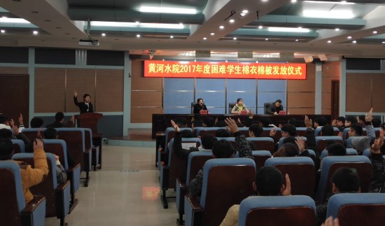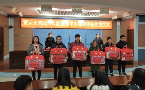 12月13日,由我校学生资助管理中心主办校诚信自强联合会承办的我校2017年度困难学生棉衣棉被发放仪式在3号实训楼学术报告厅举学生处相关负责人、老师及各院系资助助理、受助学生代表参加活动