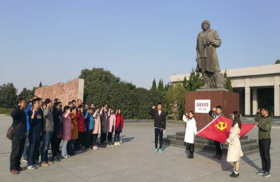 学员们参观了确山竹沟革命纪念馆、杨靖宇将军纪念馆,并到竹沟革命烈士陵园开展悼念活动。学员们怀着敬畏之心,学习烈士们的感人事迹和他们为党和人民不怕牺牲、勇于奋斗的精神,对杨靖宇将军短暂的一生、战斗的一生、辉煌的一生充满崇敬和感动。党员们在杨靖宇将军的雕塑前缅怀先烈,并在党旗前重温入党誓词,表示将“不忘初心、牢记使命”,坚决为党和人民的事业奋斗终生。(供图:土木与交通工程学院)
