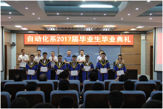 最后,与会的校系领导与师生共同观看了2017届毕业生校园生活回顾和师长临别寄语影片,为省级和校级优秀毕业生颁发了证书及奖品,并合影留念。