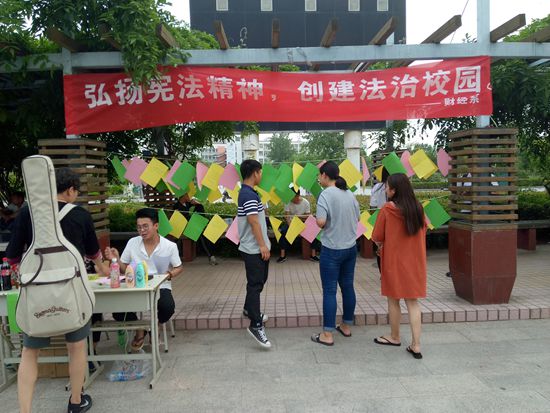 为进一步引导我校师生学法、知法、懂法、用法、护法,增强师生法律意识和法律素养,5月13日下午,由财经系分团委主办的以“弘扬宪法精神 创建法治校园”为主题的法律知识问答活动在扬帆广场北侧举行。