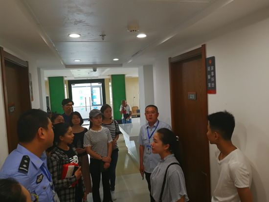 活动中,在立案庭一庭长杜琦和二庭长吕建军的带领下,学生们首先参观了法院诉讼服务中心大厅、立案大厅和调解室。两位庭长分别用通俗易懂的语言向学生们讲解了法庭审判的步骤和程序。随后,学生们来到信息集中控制中心和审判法庭,通过工作人员的讲解和演示,了解了集控中心先进的信息化工作模式、法庭的组成人员及格局布置,体验了审判长、审判员等法庭角色,感受了法庭的威严。