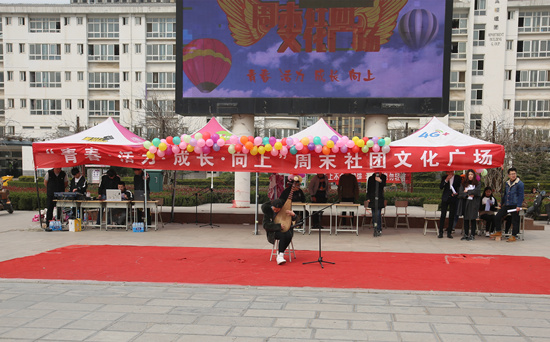 3月12日,由校团委主办、艺术系分团委承办的我校首届周末社团文化广场活动在扬帆路顺利举行,活动以“青春·活力·成长·向上”为主题。团委书记刘许亮、艺术系分团委书记、社团联合会指导老师及数百名师生参加了活动。