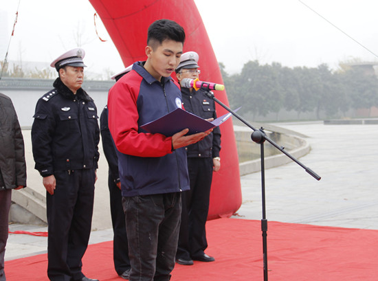活动现场,人头攒动,气氛热烈。交警部门通过摆放宣传展板、悬挂标语横幅、散发宣传手册、开展集体宣誓及签名等形式广泛开展安全交通宣传活动。我校学生张鹏举在启动仪式上代表大学生发言,倡议:“文明交通、文明开封、从你我做起”。