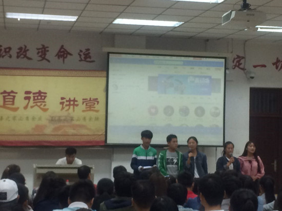讲堂在朗诵中拉开帷幕,在场师生共同学习“中国好人榜”中马观适、谭杰华两位同志助人为乐的事迹。凡人在基层,小事现生活,细节藏友善,“凡人小事”所迸射的友善力量,使现场师生为之感动。学生们排演的短剧《感恩》,震撼心灵、引人深思,让师生们体会应该怎样去践行孝道文化、感恩父母。2016级学生代表诵读经典,展现了中华民族传统文化的深厚内涵,激发了师生学习传统文化、传承中华美德的动力和热情。最后,在场师生共同做出庄严承诺,齐唱《明天会更好》,并在写有“生活需要宽容友善”的倡议横幅上签名。