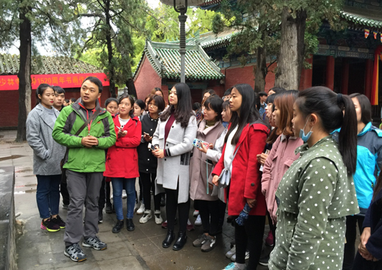 为进一步激发学生专业学习的积极性,开拓眼界,提升专业实践技能水平,提高全国导游人员资格证书考试通过率,10月27、28日,在旅游管理教研室主任王启,专业教师徐永红、苑伟娟、荣培君以及2015级辅导员周瑞雪等教师们的带领下,2015级旅游管理专业学生先后来到2016年导游资格考试面试景点巩义康百万庄园、嵩阳书院、嵩山少林寺和中岳庙进行导游业务综合实习。