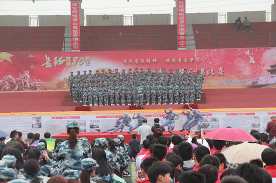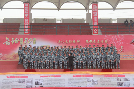 为纪念红军长征胜利80周年,弘扬伟大的长征精神,9月27日,我校以“追忆长征精神,绽放青春梦想”为主题的新生合唱比赛在祥云体育场举行。来自全校12个院(系)的2016级新生组成的12支合唱队参加了本次合唱比赛。由12支院系代表队及校广播站带来的13首歌曲,使全校师生通过熟悉的旋律、广为流传的歌曲背后的故事,追忆长征精神,经历了一次历史的回放和灵魂的洗礼。