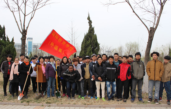 3 月12植树节,我校国际教育学院组织开展了以“播种友谊,美化环境”为主题的植树活动。副校长刘紫婷及该学院领导班子成员、留学生和各专业学生代表等40余人参加了此次活动。
