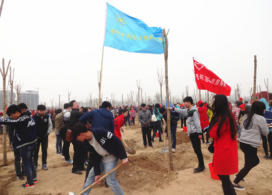 3月12日上午,在开封市西区中意湖畔,环境与化学工程系分团委书记李孝坤及王恺老师带领我校20余名环保志愿者参加了由开封市纪委、团市委共同举行的“大手拉小手共筑清风林”植树绿化活动。
