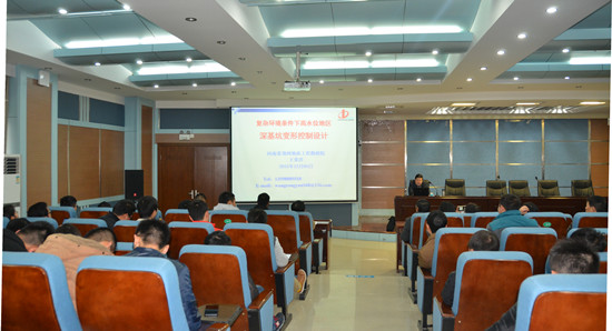 报告中,王荣彦综述了我国目前深基坑设计与施工的主要研究方向与成果;结合自己在工程实践中的经验、体会及遇到基坑支护问题时的处理方法等,详细分析与阐述了复杂环境条件下高水位地区深基坑变形控制设计问题;与参会师生分享了自己多年的技术经验、学术研究成果,并毫无保留地将自己多年积存的资料素材提供给我校,供教学与科研服务使用;指出了复杂环境条件下高水位地区深基坑变形控制设计研究的重点方向和应该注意的问题,对从事本专业工作与研究的师生进行了具体的指导。