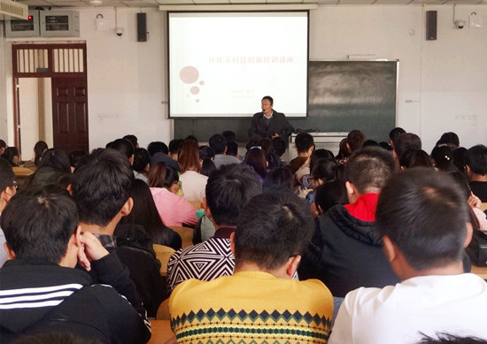姚新鼎博士以研发和化工生产的区别和联系,向学生们阐明研发离我们并不远,参加科技创新活动可以增强兴趣、提高各种能力;为学生们详细介绍了校团委主办的科技创新项目申报活动和学生科技创新方面的整体概况,勉励大家要认清过去,把握现在,思考未来,做一个学习型实用人才。最后,他以一个申报成功的科技创新项目为例,为大家详细介绍并生动演示了如何填报申请材料及在评审汇报时的注意事项。