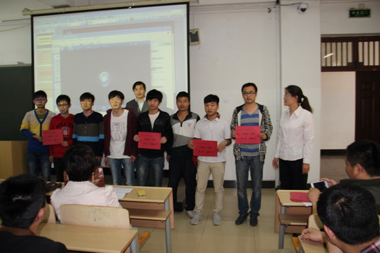 基础部副主任唐仙芝就数学建模竞赛作了简单介绍,对2014年的比赛和培训提出了要求。基础部副主任方敏宣读了2013年数学建模竞赛获奖名单,并给获奖学生颁发证书和奖金;吕良军老师对2014年我院数学建模竞赛工作做了安排。