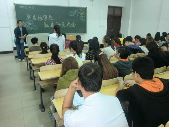 为使财经系毕业班学生提前了解就业形势,增强就业意识,调动全体毕业班学生的主观能动性,做到早准备、早落实,从而全面推动毕业班学生顺利走向工作岗位,925下午1300,财经系在JX6502召开了毕业班学生就业动员大会,财经系党支部书记杜广平、副书记崔嵩以及毕业班辅导员舒莎、马峥老师及财经系全体大三毕业班学生参加会议。
