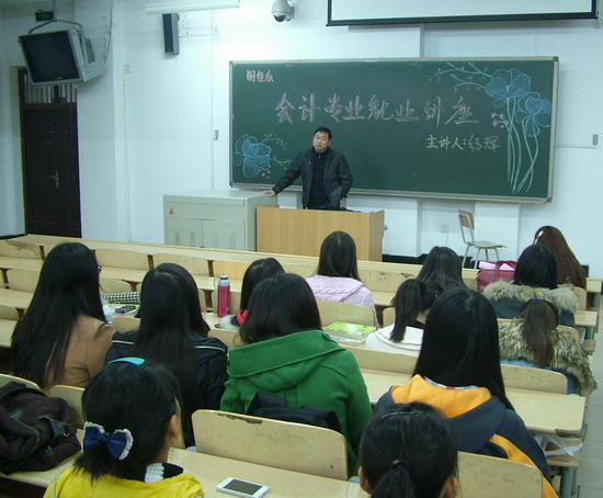 为使会计专业学生充分了解就业形势,增强主动就业意识,保障学生能够顺利走上工作岗位,尽快适应工作状态,1112日上午8:30,财经系在JX2102举行了会计专业就业指导讲座。财经系主任张辉、办公室主任孔静、2011级会计专业辅导员马峥和2011级会计专业毕业班学生参加讲座活动。