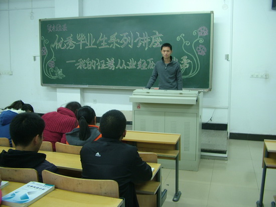 为了使财经系毕业生进一步了解各大、中、小型企业的用人需求及就业方向,引导同学们更好的掌握专业基本技能应对企业需求,112日、19日,财经系先后举办了多期优秀毕业生专业讲座,邀请本系2005届投资与理财专业毕业生魏宁、08届投资理财专业毕业生吴少勇为大家讲述成功经历。