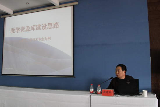 周建郑教授就精品课程建设和教学资源库建设两个方面进行了深入明晰的讲解,得到了参会教师的热烈好评。会间,周建郑教授与河南化工职业学院党委书记郭改英、副院长赵玉奇、教务处处长朱明悦、副处长王成和参会教师进行了深入交流。