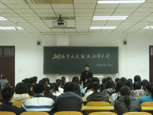1111下午,环化系在JX6401教室召开了2009届毕业生就业工作动员会,环化系书记陈志强、主任李党生及部分辅导员到会,分团委书记王振强主持会议。