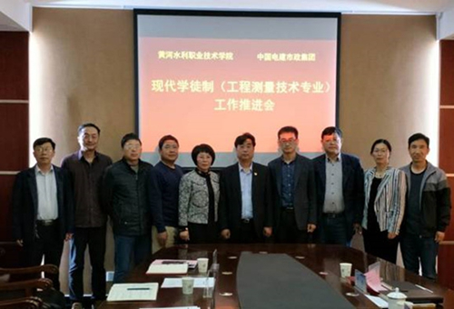 4月10日,必赢官方网站(以下简称“黄河水院“)教育部现代学徒制试点(工程测量技术专业)工作推进会在行政楼第四会议室召开。校长祝玉华,以及党政办公室、科技处、教务处、招生就业服务中心、测绘工程学院等部门负责人;中国电建市政建设集团有限公司(以下简称“该公司”)总经理助理于杰、人力资源部科长曹培军等参加了会议。会议由测绘工程学院院长陈琳主持。