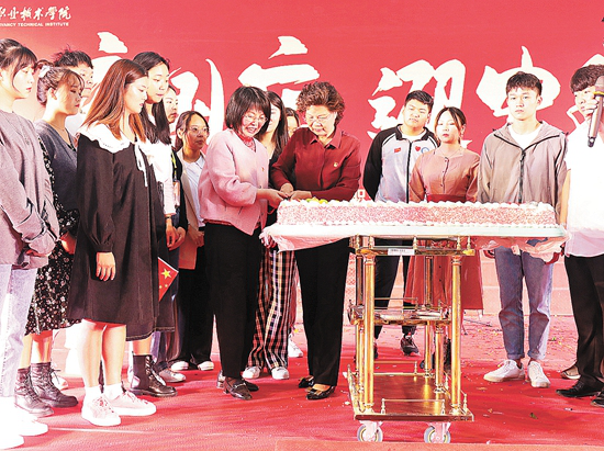 12个学院和校艺术团合唱队带来的合唱展演在扬帆广场拉开帷幕。师生们一起观看了展演,展演共分为祝福祖国、强军报国、中流砥柱、展望未来等4个篇章。学子们意气风发、歌声嘹亮,唱出了自豪与骄傲,在《歌唱祖国》《我和我的祖国》《国家》等歌曲的深情演绎中,全校学生共同欢庆国庆、中秋佳节的到来。在一曲《今天是你生日》合唱之后,主持人特意邀请10月1日当天生日的学子们一起上台,与大家共同分享生日感想。校领导还上台为当天生日的学子切蛋糕、发蛋糕。大家一起为这些学子送上生日祝福,也一起祝福祖国母亲生日快乐。 晚上,校领导们来到操场和教室与学生共赏明月、竞猜成语。在联欢晚会上,校长祝玉华祝福学子及家人节日愉快,希望今天的经历成为大家成长的财富,并与全体师生共勉在“双高校”建设的路上要持之以恒,为了黄河水院的梦想和学子们的梦想,一起加油、共同努力!